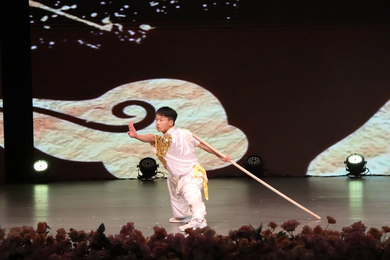 晚会节目精彩纷呈,高潮迭起。新生达人秀《仁心艺彩》融合武术、美声、魔术等多种表演形式,刚劲有力的武术招式,刀棍与空气碰撞的哗然声紧紧抓住观众的眼球;高亢悠扬的唱腔婉转绵长,赋予舞台以深沉的情感张力;魔术表演以趣味互动铺陈悬念,魔术师灵动笔触在黑板间定格“幸福”二字,既暗藏巧思,又呼应新生开启校园新生活的美好愿景,瞬间点燃全场热情。艺术团模礼队《半阙江南》将传统风韵与现代审美完美交融,旗袍的温婉与中山服的俊朗相映成趣,一步一韵、一颦一笑尽显东方雅韵。相声《我要策划》以诙谐包袱调侃校园日常,“上课困怎么办” 的趣味互动让台下笑声与掌声此起彼伏;医学一系、二系联合呈现的情景朗诵《白袍青春》,通过实验室钻研、急救实操等场景再现医学生日常,尾声 “健康所系,性命相托” 的铮铮誓言铿锵有力,成为晚会一大亮点。
