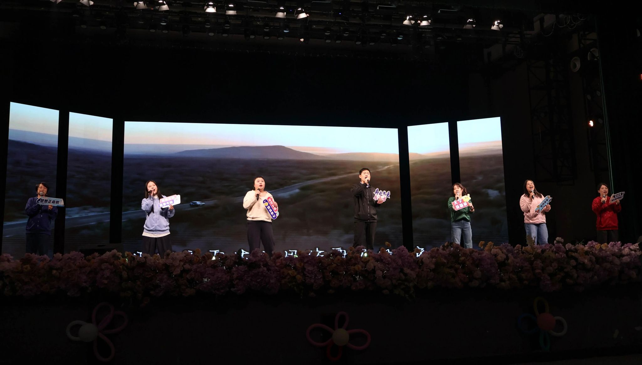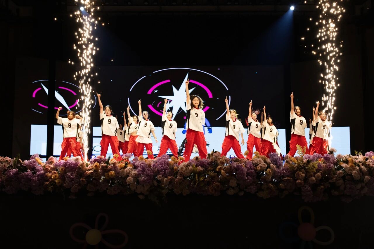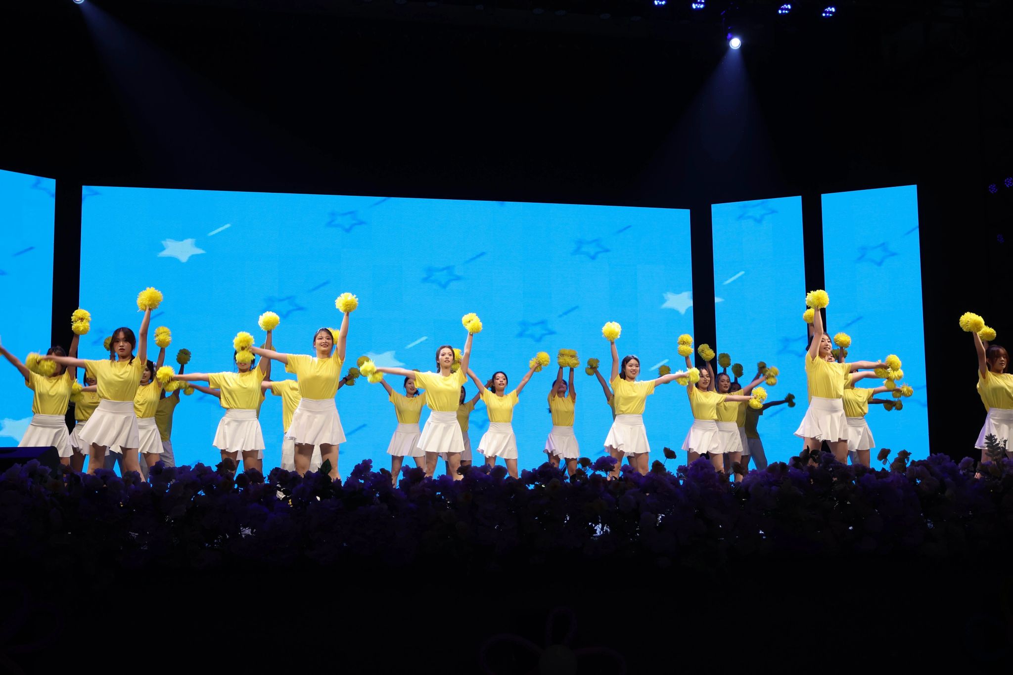 《青春进行时》经典歌曲串烧环节,《你曾是少年》《我的未来式》等熟悉旋律响起,现场瞬间化作青春合唱的海洋;啦啦操《青春恰时来》动作整齐划一、活力四射,展现出仁济学子的昂扬风貌。晚会临近尾声,2025 级新生辅导员们登台合唱《奔跑》,真挚歌声传递着浓浓的师生情谊,将现场温情推向顶点。