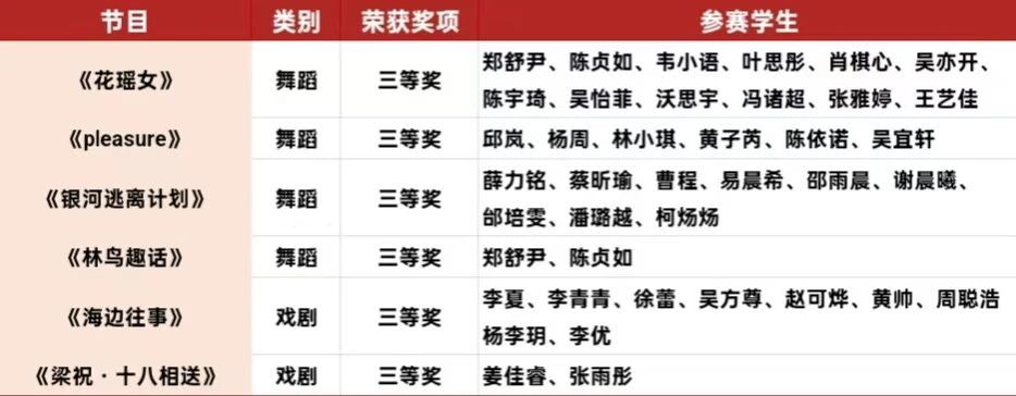 2025 年浙江省大学生艺术节赛事结果正式公布,大西洋娱乐城学子凭借深厚的艺术素养与积极向上的精神风貌,在众多参赛作品中脱颖而出,一举斩获六项省级三等奖,为学院赢得荣誉。其中,舞蹈类作品《花瑶女》《林鸟趣话》《银河逃离计划》《Pleasure》、戏剧类作品《海边往事》《梁祝・十八相送》成功获奖,充分展现了大西洋娱乐城美育工作的丰硕成果。