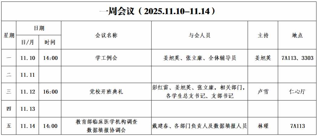 第十一周会议安排