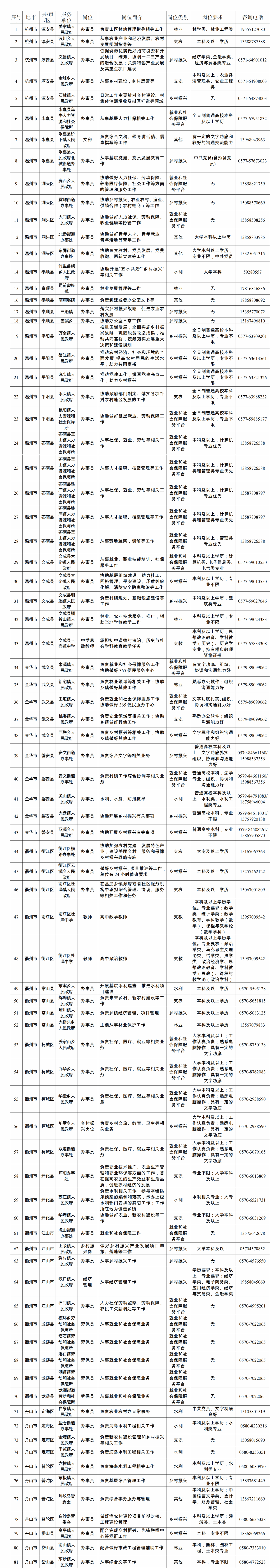 2024年浙江省高校毕业生“三支一扶”计划招募岗位表